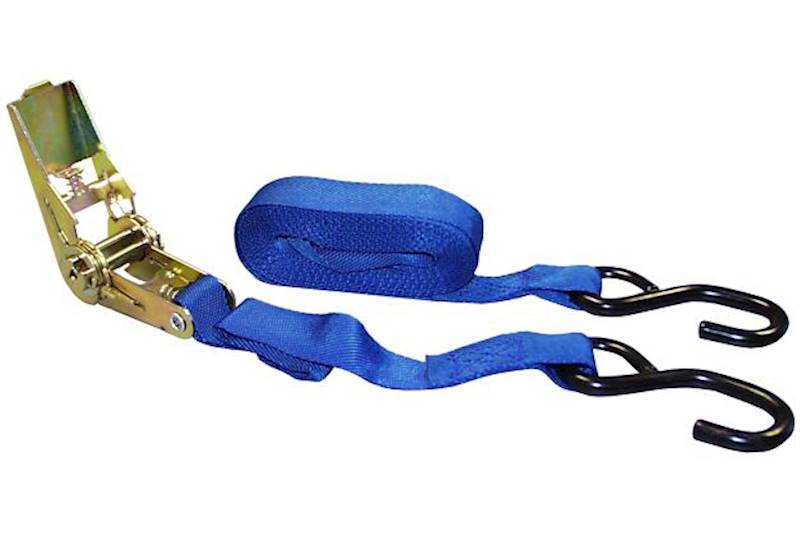 Designed for quick and easy operation High quality, weather-resistant nylon webbing with secure stitching and steel ratchet Vinyl coated, heat-treated steel hooks One piece per clamshell package 400 lbs. safe working load limit 1,200 lbs. maximum load rating