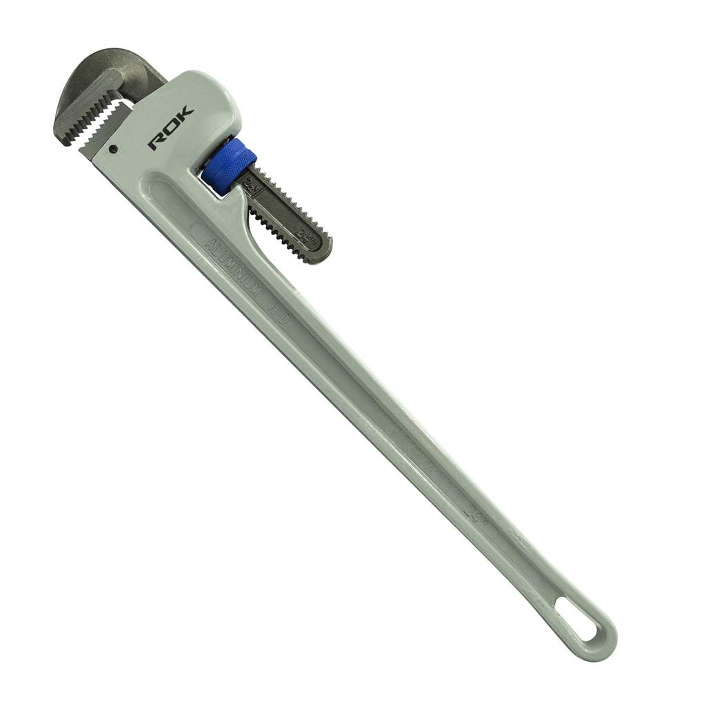 ROK Pipe Wrenches are designed to turn steel, iron, or similar metal pipes and fittings with precision and force - Tough drop forged aluminum construction is up to 40% lighter than standard steel pipe wrenches- Heat treated ridged jaws for maximum torque- Ergonomic handles designed for comfort and a greater balance - Hardened and tempered aluminum alloy deliver increased grip and tooth durability - Nonslip adjusting ring