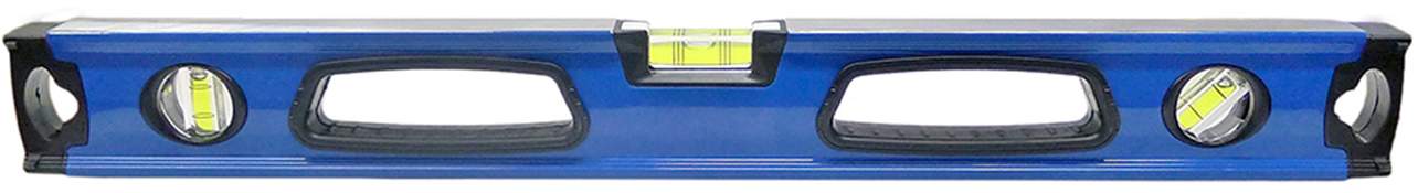 • Heavy duty aluminum frame will not twist or warp • 3 Vials with plumb, level and 45° readings • Easy read vial – readable from any direction • Solid block vials will not fog or leak • Shock proof vials • Shock absorbing rubber end caps • Comfortable rubberized hand grips • Accuracy: 0.5 mm / 0.029°