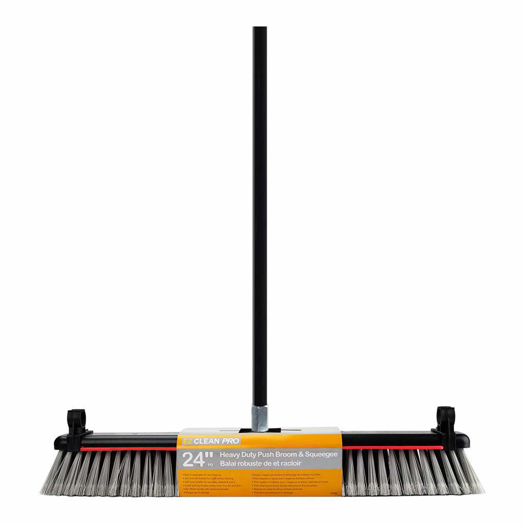 • Built in squeegee for multi-surface flooring • Stiff and soft bristles • Stiff inner bristles for concrete, asphalt & wood • Outer split-tip bristles sweep away fine dirt and dust • 60in Metal handle with reinforced thread and a 24in broom head • Hanger tip for storage