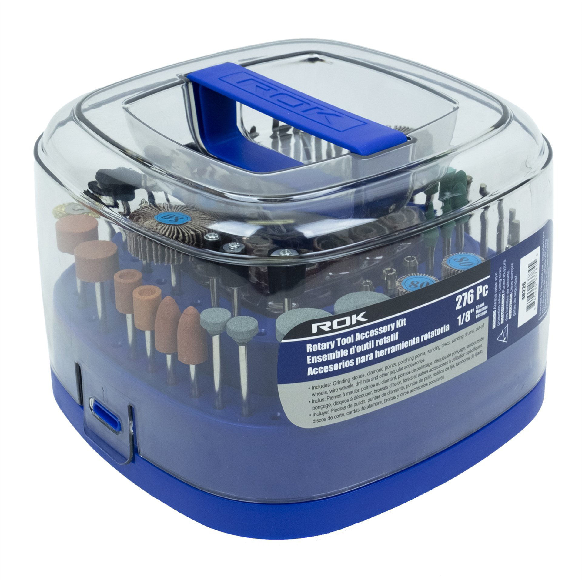 • Includes: Grinding stones, diamond points, polishing points, sanding discs, sanding drums, cut-off wheels, wire wheels, drill bits and other popular accessories • Removable center tray • Rotating base